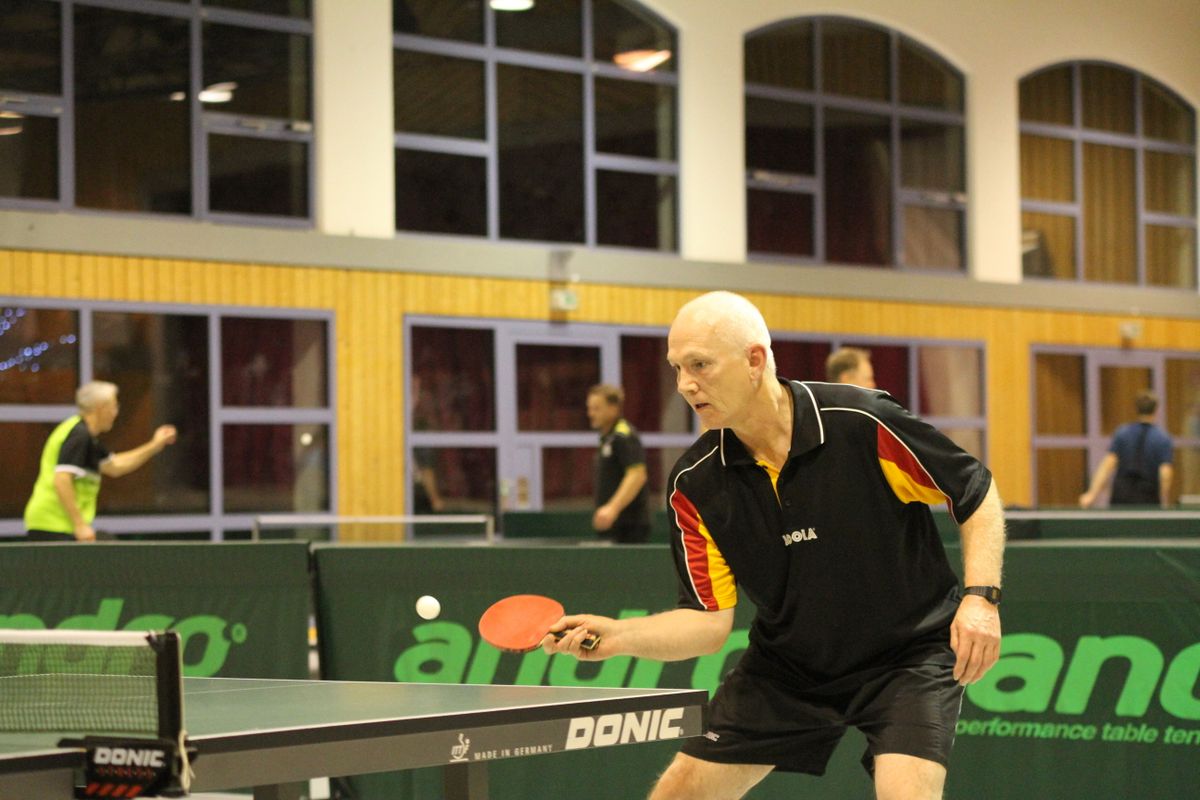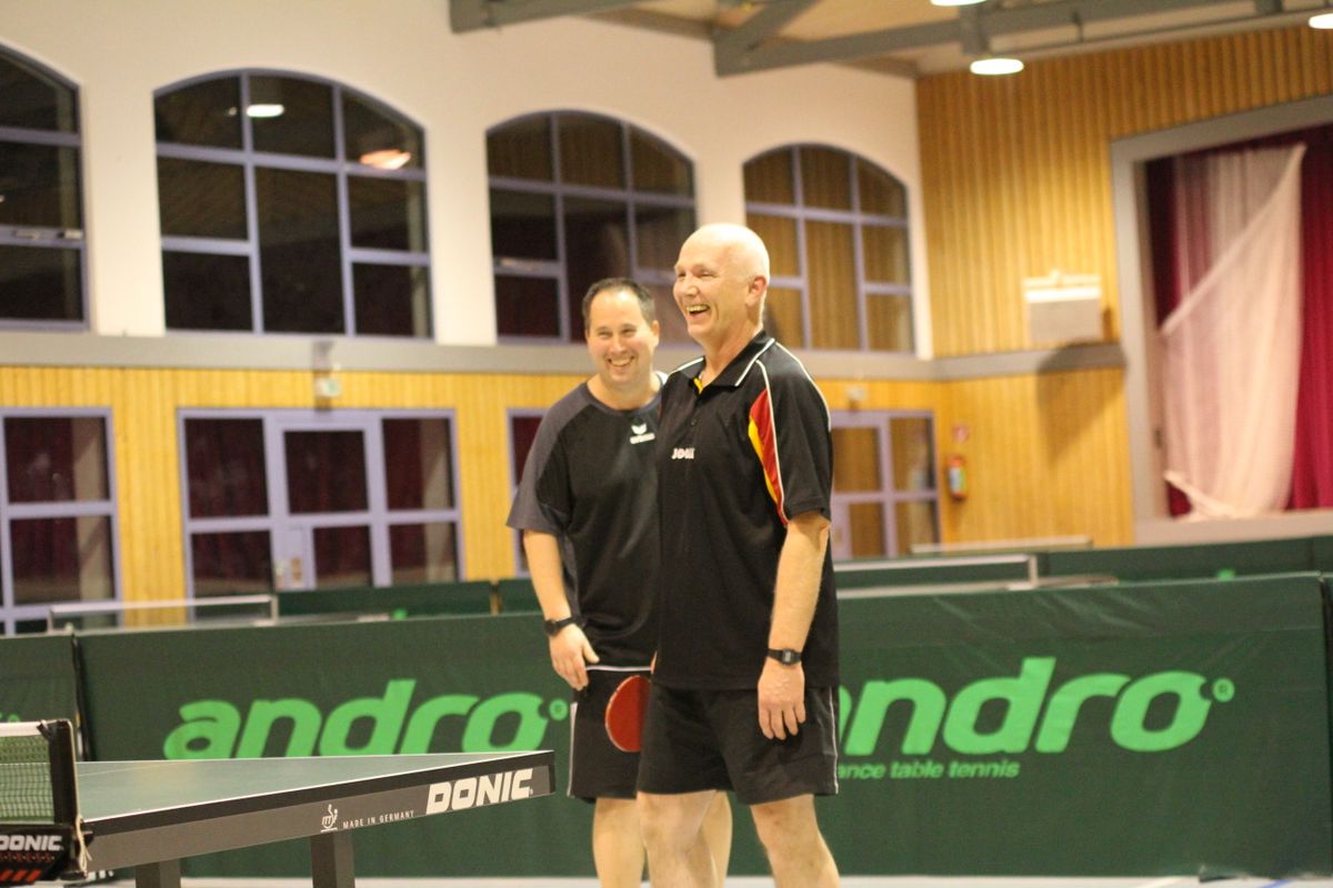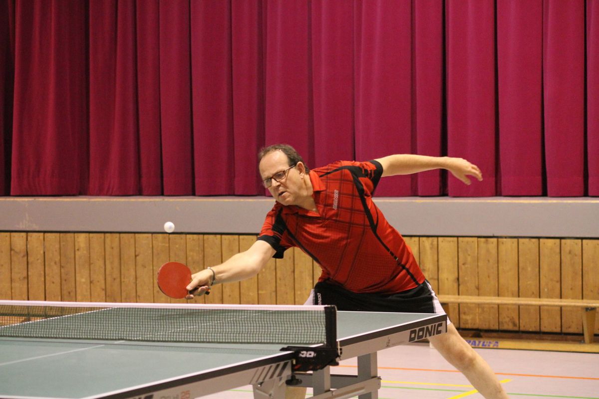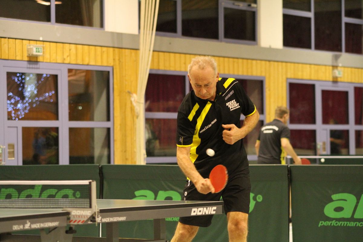 (27.12.2019) Die Frage nach dem Sieger vereinsinterner Turniere stellt sich schon lange nicht mehr. Zu sicher beherrscht Wolfgang Eick seit Jahren Ball und Gegner, ganz gleich ob der Ball 38 oder 40 mm Durchmesser hat, aus Zelluloid oder Plastik ist, der Gegner keinen oder 7 Punkte Vorsprung erhält. Die eigentliche Überraschung des Abends war die mit 25 hohe Teilnehmerzahl. Anscheinend lag unter manchem Weihnachtsbaum ein neuer Schläger, der sogleich auf seine Tauglichkeit hin getestet werden musste. Da der jeweils schwächeren Spieler eine Vorgabe erhielt, kamen unter der hervorragenden Leitung von Michael Reh und Helmut Feldmann durchweg spannende Spiele zustande. Im Einzel erreichten Christof Mallmann und überraschend Hans-Jürgen Mann die weiteren Podiumsplätze, die Doppelkonkurrenz gewannen Reh/Horn vor Mallmann/Hättich, Eick/Mann und Stabel/Preuß.