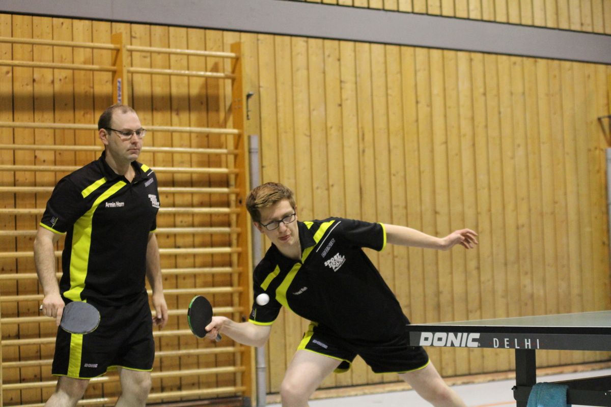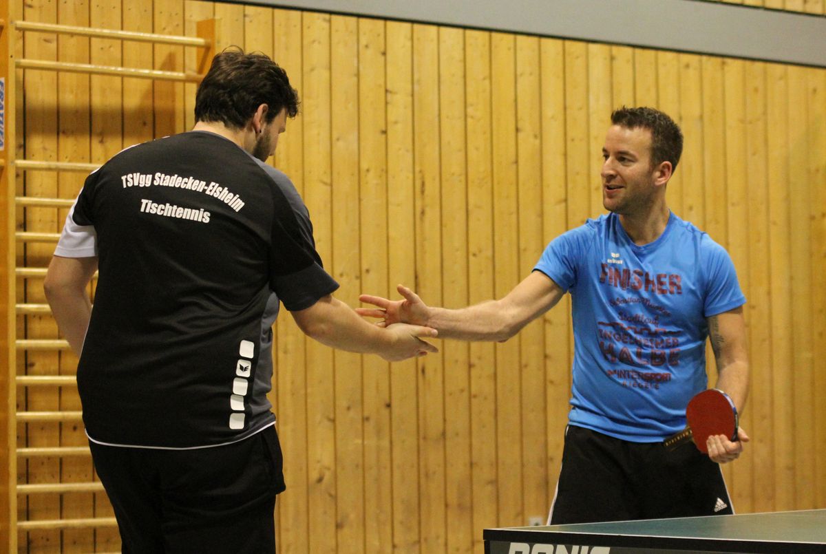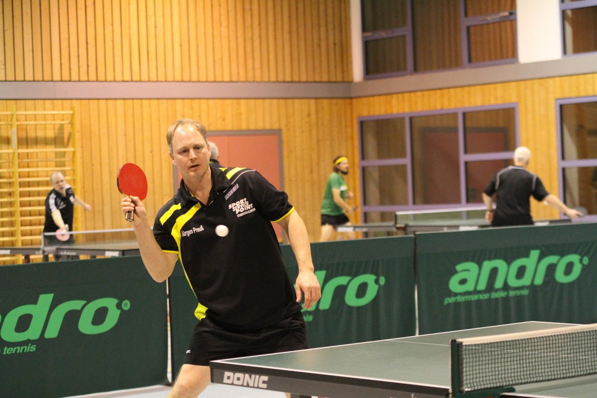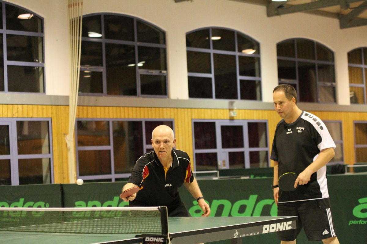 (27.12.2019) Die Frage nach dem Sieger vereinsinterner Turniere stellt sich schon lange nicht mehr. Zu sicher beherrscht Wolfgang Eick seit Jahren Ball und Gegner, ganz gleich ob der Ball 38 oder 40 mm Durchmesser hat, aus Zelluloid oder Plastik ist, der Gegner keinen oder 7 Punkte Vorsprung erhält. Die eigentliche Überraschung des Abends war die mit 25 hohe Teilnehmerzahl. Anscheinend lag unter manchem Weihnachtsbaum ein neuer Schläger, der sogleich auf seine Tauglichkeit hin getestet werden musste. Da der jeweils schwächeren Spieler eine Vorgabe erhielt, kamen unter der hervorragenden Leitung von Michael Reh und Helmut Feldmann durchweg spannende Spiele zustande. Im Einzel erreichten Christof Mallmann und überraschend Hans-Jürgen Mann die weiteren Podiumsplätze, die Doppelkonkurrenz gewannen Reh/Horn vor Mallmann/Hättich, Eick/Mann und Stabel/Preuß.
