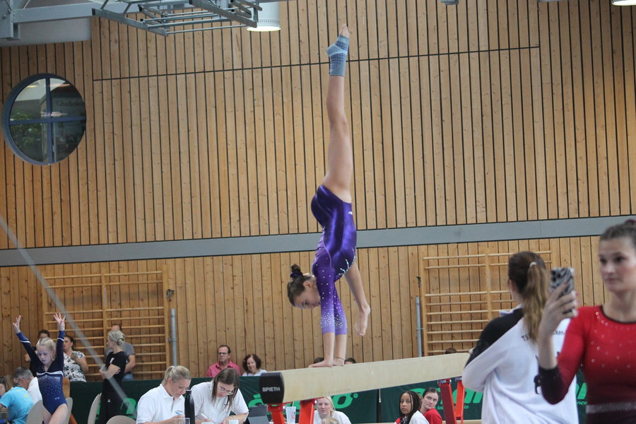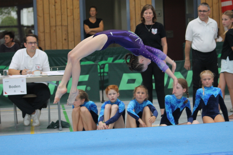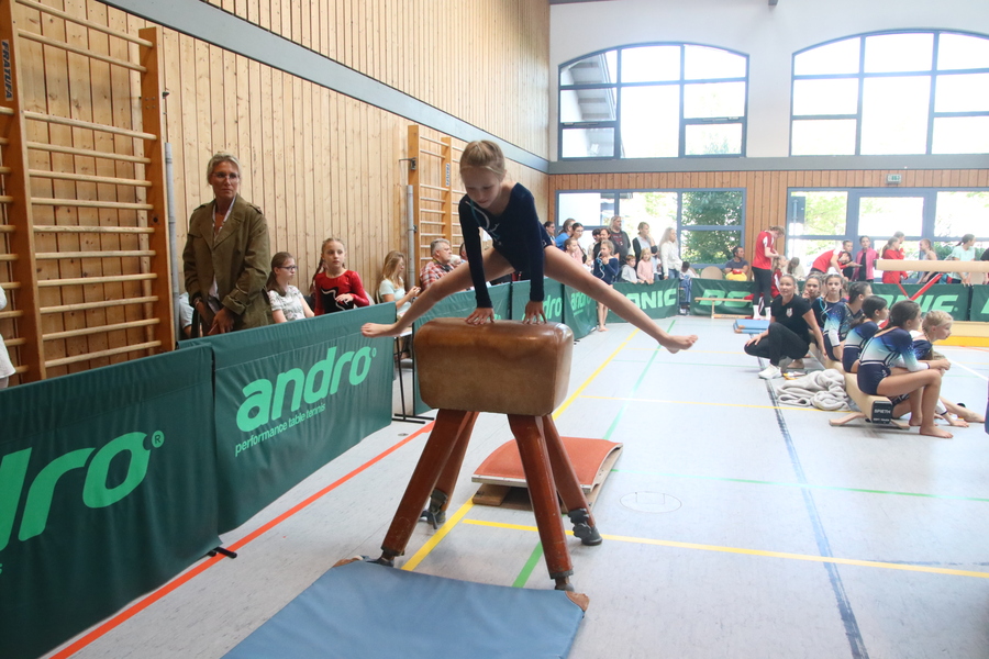 In 2 Durchgängen bei doppeltem Kampfgericht präsentierten die Turnerinnen ihre Übungen, für die sie in ihren Übungsstunden fleißig trainiert hatten - eine - bei der hohen Meldezahl - Mammutaufgabe für die Organisation und Ausrichtung durch die TSVgg, die aber dank der Helfer*innen, Trainer*innen, Kampfrichter*innen – abgesehen von der Zeitverzögerung - problemlos gemeistert wurde. Großer Dank geht an unsere Abteilungsleiterin Jutta Kleemann, die Küchenchefin Hannelore Pozaroszczyk und ihr Team, Annette und Manfred Bernarding mit Helfer*innen bei der umfangreichen Vorbereitung und Auswertung der Wettkämpfe im Rechenbüro. Wir bedanken uns auch herzlich für die Kuchenspenden durch unsere Eltern, die Mithilfe beim Verkauf und beim Auf- und Abbau der Geräte.