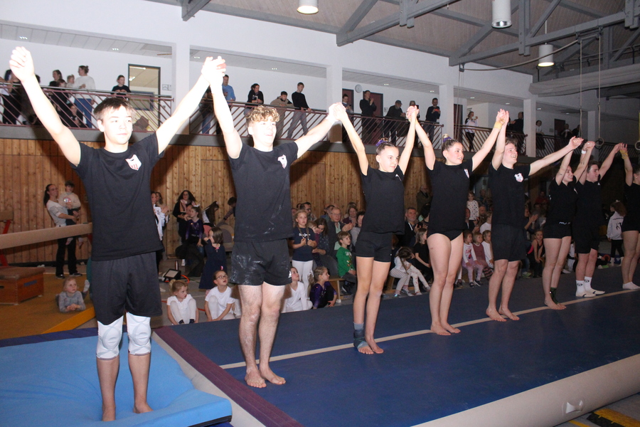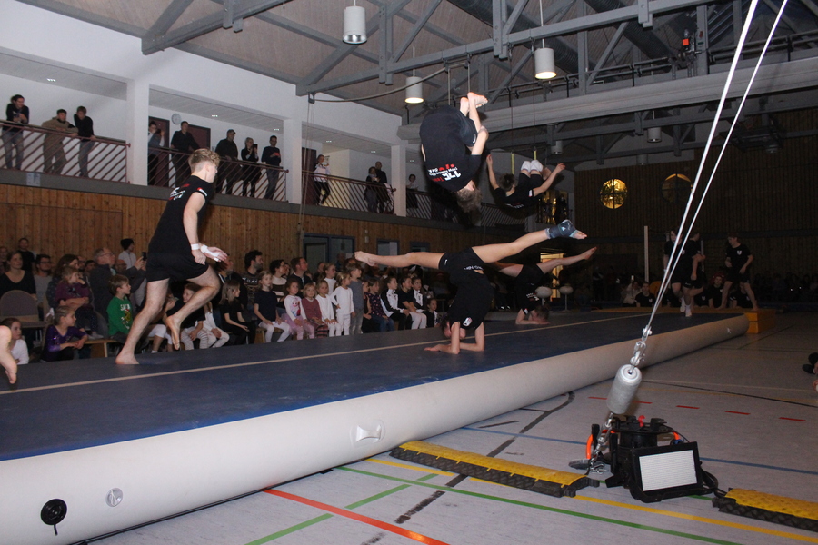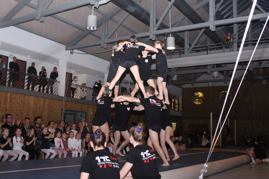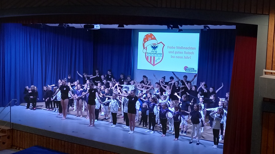 Den Abschluss der Veranstaltung gestaltete die Turnerjugend, die mit ihrer Airtrackvorführung für einen fulminanten Schlusspunkt im Saal sorgte, bevor alle kleinen und großen Aktiven des Abends die Feier mit einem gemeinsamen Weihnachtstanz auf der Bühne beendeten.