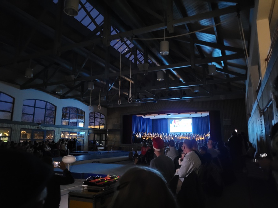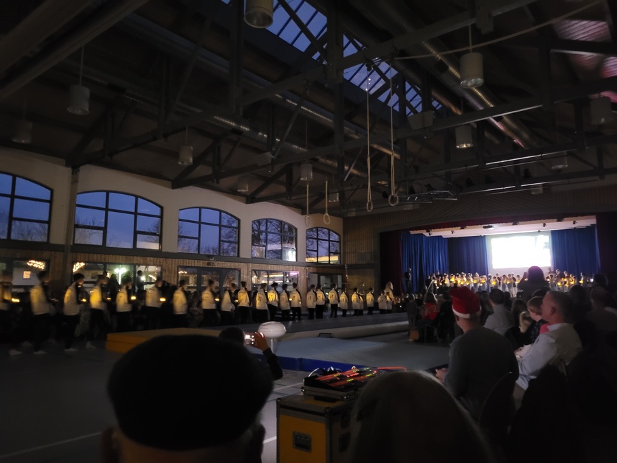 Der Einzug aller Aktiven mit Lichtern durch den dunklen Saal auf die Bühne sorgte bereits am Anfang für Gänsehautmomente. Zeitgleich gab es passend zur Einlaufmusik auf der Bühnenleinwand einen Videotrailer zu sehen, der die vielen Highlights und schönsten Momente der Turnabteilung aus dem laufenden Jahr zusammenfasste. Dieser wurde eigens dafür von Janos Gröhl erstellt. Dem schloss sich die Begrüßung durch unseren 1. Vorsitzenden Adrian Scherffius an, bevor es mit dem Bühnenprogramm losging.
